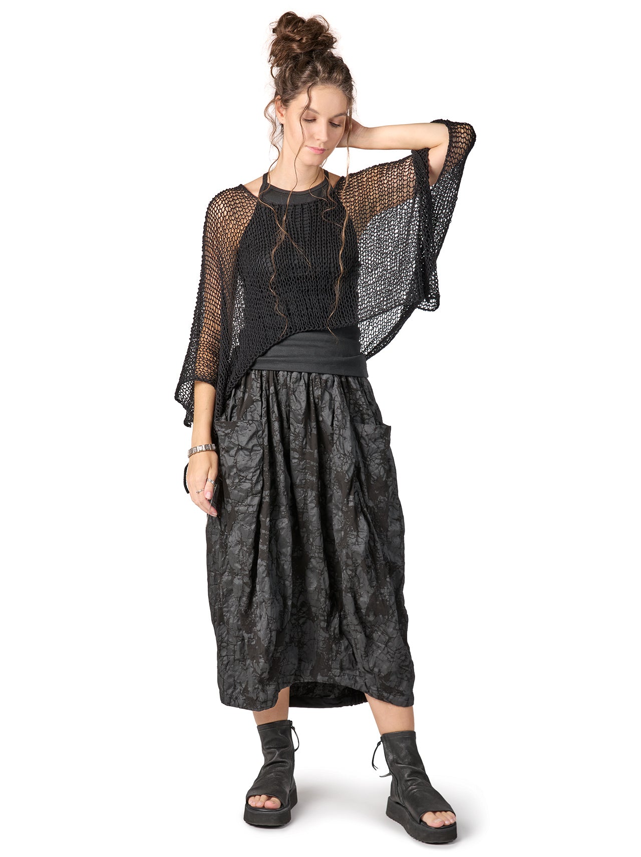 Asymmetric shapes, layered looks, comfortable jerseys, and unfinished textures characterize the label’s unmistakable aesthetic. studiob3 designs move naturally with the body—wrinkles welcome—reflecting the brand’s dedication to conscious, effortless fashion.